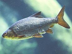 - Rutilus erythrophthalmus (heimisch, in ganz Italien verbreitet) Merkmale: meist hochrückiger, seitlich abgeflachter Körper; Grundfärbung silbrig bis graubraun; endständiges Maul; max. Größe: bis 40 cm; Ansatz der Rückenflosse und Bauchflossen auf gleicher Höhe