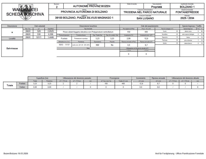 In Alto Adige, i boschi con una superficie superiore ai 100 ettari devono essere gestiti tramite un piano di gestione dei beni silvo-pastorali, che viene aggiornato ogni dieci anni.